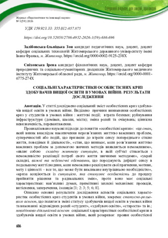 Соціальні характеристики особистісних криз здобувачів вищої освіти в умовах війни: результати дослідження.