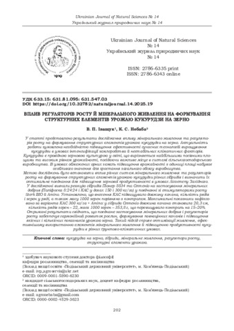 ДСТУ 8302:2015: Іващук В. П., Небаба К. С. Вплив регуляторів росту й мінерального живлення на формування структурних елементів урожаю кукурудзи на зерно. Український журнал природничих наук. 2025. № 14. С. 202–209. DOI: 10.32782/naturaljournal.14.2025.19.