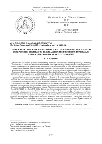 Сорти салату посівного листкового Lactuca sativa L. var. secalina закордонної селекції та реалізація їх генетичного потенціалу в правобережному Лісостепу України.
