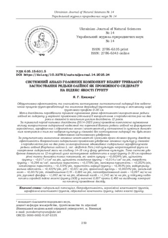 ДСТУ 8302:2015: Цицюра Я. Г. Системний аналіз головних компонент впливу тривалого застосування редьки олійної як проміжного сидерату на індекс якості ґрунту. Український журнал природничих наук. 2025. № 14. С. 250–269. DOI: 10.32782/naturaljournal.14.2025.24.