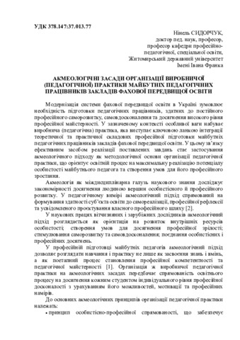 Акмеологічні засади організації виробничої (педагогічної) практики майбутніх педагогічних працівників закладів фахової передвищої освіти.