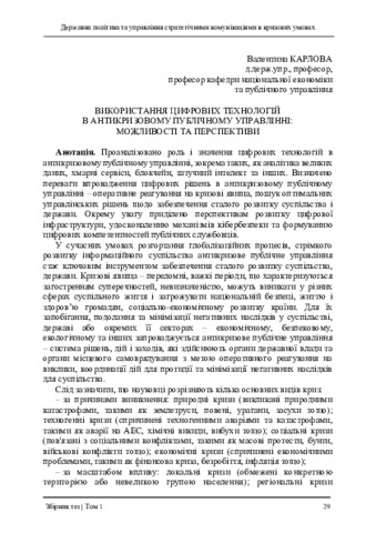 Використання цифрових технологій в антикризовому публічному управлінні: можливості та перспективи