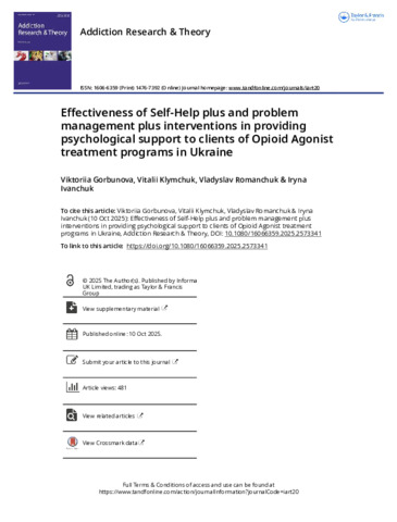 The paper presents an effectiveness study of two World Health Organization (WHO) scalable psychological interventions, Self-Help Plus (SH+) and Problem Management Plus (PM+), for the patients of the Opioid Agonist Treatment (OAT) programs in Ukraine during wartime.