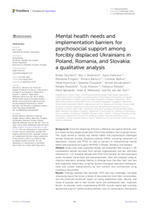 Mental health needs and implementation barriers for psychosocial support among forcibly displaced Ukrainians in Poland, Romania, and Slovakia: a qualitative analysis