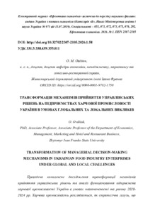 Трансформація механізмів прийняття управлінських рішень на підприємствах харчової промисловості України в умовах глобальних та локальних викликів.