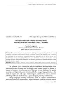 Strategies for Foreign Language Teaching During Blackouts in Ukraine: Adapting to Energy Constraints