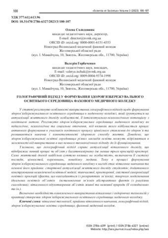 Голографічний підхід у формуванні здоров’язбережувального освітнього середовища фахового медичного коледжу.