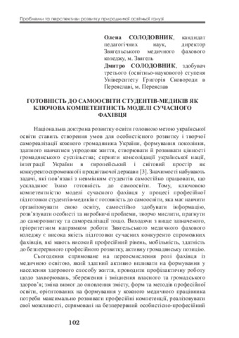 Готовність до самоосвіти студентів-медиків як ключова компетентність моделі сучасного фахівця.