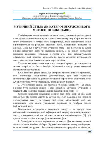 Музичний стиль як категорія художнього мислення виконавця.
