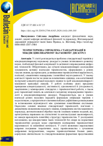 Теорія терміна і проблема стандартизації в міждисциплінарному науковому дискурсі.