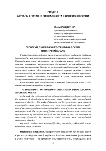 Проблема дискалькулії у спеціальній освіті: теоретичний аналіз.