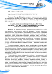 Модель іншомовної підготовки майбутніх фахівців у контексті формування міжкультурної комунікативної компетентності.