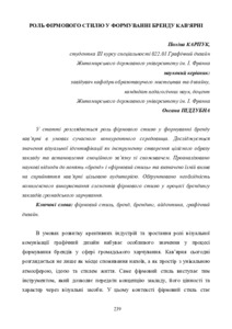 У статті розглядається роль фірмового стилю у формуванні бренду кав’ярні в умовах сучасного конкурентного середовища. Досліджується значення візуальної ідентифікації як інструменту створення цілісного образу закладу та встановлення емоційного зв’язку зі споживачем. Проаналізовано наукові підходи до понять «бренд» і «фірмовий стиль» та визначено їхній вплив на сприйняття кав’ярні цільовою аудиторією. Обґрунтовано необхідність комплексного використання елементів фірмового стилю у процесі брендингу закладів громадського харчування.