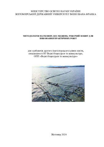 Робочий зошит для виконання практичних робіт «Методологія наукових досліджень» для здобувачів другого (магістерського) рівня освіти спеціальності Н5 Водні біоресурси та аквакультура, ОПП «Водні біоресурси та аквакультура».