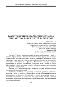 Розвиток критичного мислення умовно літературної галузі у дітей та підлітків