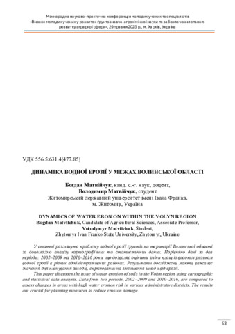 Динаміка водної ерозії у межах Волинської області.