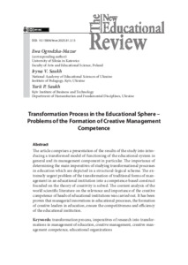 Transformation Process in the Educational Sphere – Problems of the Formation of Creative Management Competence