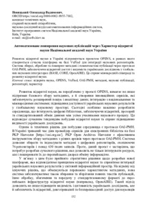 Автоматизоване поширення наукових публікацій через Харвестер відкритої науки Національної академії наук України.