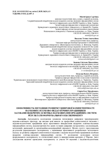 Ефективність методики розвитку цифрової компетентності наукових і науково-педагогічних працівників засобами відкритих освітньо-наукових інформаційних систем: результати формувального експерименту.