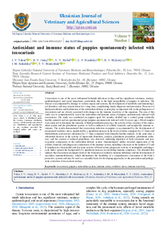 | ДСТУ 8302:2015: | Antioxidant and Immune Status of Puppies Spontaneously Infected with Toxocariasis / І. В. Токар та ін. Ukrainian Journal of Veterinary and Agricultural Sciences. 2026. Т. 9, № 1. С. 3–7. DOI: 10.32718/ujvas9-1.01. |