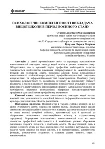 Психологічні компетентності викладача вищої школи в період воєнного стану.