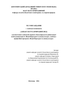 Тестові завдання з освітньої компоненти «Аквакультура природних вод» для підготовки здобувачів першого (бакалаврського) рівня вищої освіти, спеціальності «Водні біоресурси та аквакультура», освітньо-професійної програми «Водні біоресурси та аквакультура».