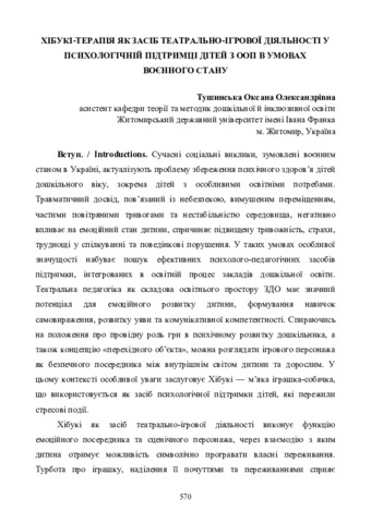 Хібукі-терапія як засіб театрально-ігрової діяльності у психологічній підтримці дітей з ООП в умовах воєнного стану.