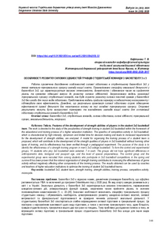 Особливості розвитку силових здібностей гравців студентської команди з баскетболу 3х3.