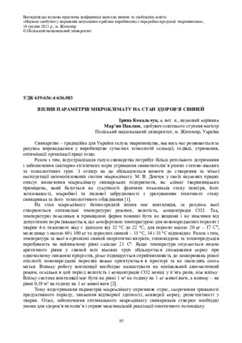 In: Всеукраїнська науково-практична конференція молодих вчених та здобувачів освіти «Наукові здобутки у вирішенні актуальних проблем виробництва і переробки продукції тваринництва», 16 грудня 2021 р., Житомир.