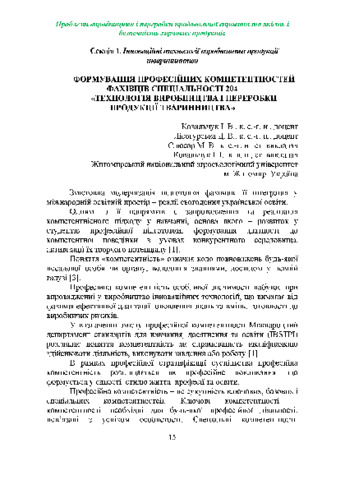 Формування професійних компетентностей фахівців спеціальності 204 «Технологія виробництва і переробки продукції тваринництва».
