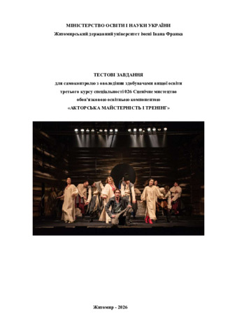 Тестові завдання для самоконтролю з оволодіння здобувачами вищої освіти третього курсу спеціальності 026 «Сценічне мистецтво» обов’язковою освітньою компонентою «Сценічна майстерність і тренінг».
