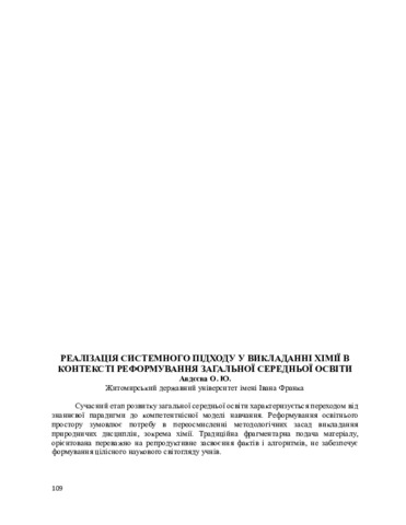 Реалізація системного підходу у викладанні хімії в контексті реформування загальної середньої освіти.
