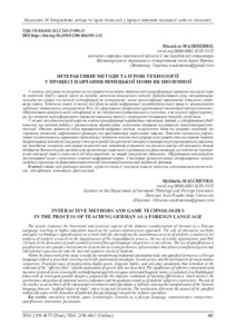 Ключові слова: інтерактивні методи, ігрові технології, німецька мова як іноземна, комунікативна компетенція, гейміфікація, мотивація, фасилітація