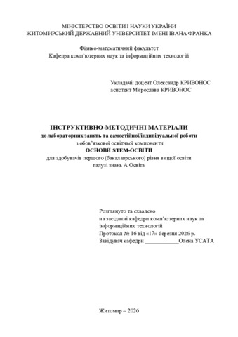 Інструктивно-методичні матеріали до лабораторних занять та самостійної/індивідуальної роботи з обов’язкової освітньої компоненти «Основи STEM-освіти» для здобувачів першого (бакалаврського) рівня вищої освіти галузі знань А Освіта.