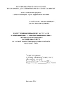 Видання містить пояснювальну записку з критеріями оцінювання навчальних досягнень здобувачів освіти; згруповані за модулями та темами лабораторні роботи, які містять питання для повторення теоретичного лекційного матеріалу, практичні завдання для аудиторної та самостійної/індивідуальної роботи, контрольні питання з обов’язкової освітньої компоненти «Основи STEM-освіти», узгоджені з програмою навчальної дисципліни; список рекомендованої літератури.
