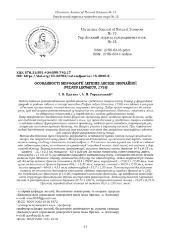 ДСТУ 8302:2015: Цанько І. В., Горальський Л. П. Особливості морфології легенів лисиці звичайної (Vulpes Linnaeus, 1758). Український журнал природничих наук. 2026. № 15. С. 83–101. DOI: 10.32782/naturaljournal.15.2026.8.