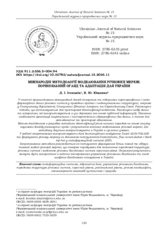 | ДСТУ 8302:2015: | Ігонькін Д. І., Ющенко В. Ю. Міжнародні методології моделювання річкових мереж: порівняльний огляд та адаптація для України. Український журнал природничих наук. 2026. № 15. С. 120–129. DOI: 10.32782/naturaljournal.15.2026.11. |