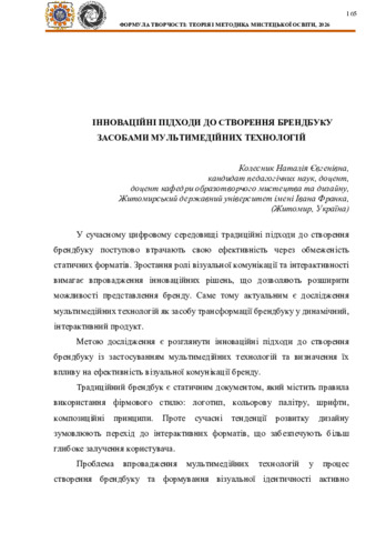 У статті розглянуто інноваційні підходи до створення брендбуку із застосуванням мультимедійних технологій у контексті сучасного розвитку графічного дизайну та цифрових комунікацій. Проаналізовано трансформацію традиційного брендбуку від статичного друкованого документа до інтерактивного цифрового продукту, що поєднує текст, графіку, анімацію, відео та елементи користувацької взаємодії. Висвітлено роль мультимедійних інструментів у підвищенні ефективності візуальної ідентифікації бренду, зручності використання та адаптивності до різних платформ і середовищ. Обґрунтовано доцільність інтеграції інтерактивних елементів для покращення сприйняття інформації та формування емоційного зв’язку з аудиторією.