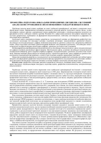 Професійна підготовка викладачів природничих дисциплін: системний аналіз і конструювання в світлі оновлення стандартів вищої освіти.