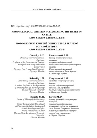 Morphological Criteria for Assessing the Heart of Cattle (Bos taurus taurus L., 1758).