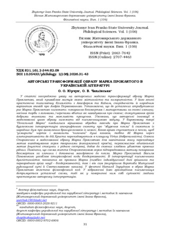 | ДСТУ 8302:2015: | Юрчук О. О., Чаплінська О. В. Авторські трансформації образу Марка Проклятого в українській літературі. Вісник Житомирського державного університету імені Івана Франка. Філологічні науки. 2026. № 106. С. 31–43. DOI: 10.35433/philology.1(106).2026.31-43. |