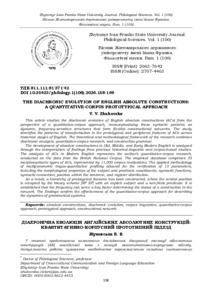 Жуковська В. В.ORCID: https://orcid.org/0000-0002-4622-4435 (2026) The Diachronic Evolution of English Absolute Constructions: a Quantitative-Corpus Prototypical Approach. Вісник Житомирського державного університету імені Івана Франка. Філологічні науки. № 106. С. 158–169. ISSN 2663-7642. DOI: 10.35433/philology.1(106).2026.158-169.