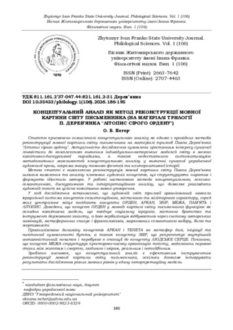 Концептуальний аналіз як метод реконструкції мовної картини світу письменника (на матеріалі трилогії П. Дерев’янка «Літопис сірого ордену»).