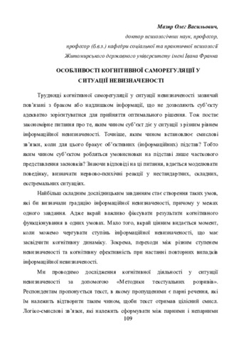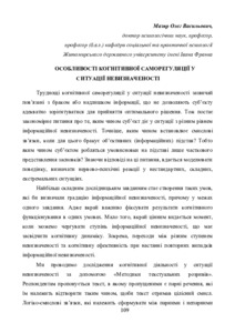 Особливості когнітивної саморегуляції у ситуації невизначеності.