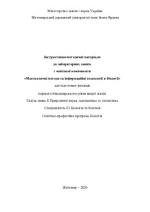 Збірник містить інструктивно-методичні матеріали до лабораторних занять з освітньої компоненти «Математичні методи та інформаційні технології в біології». Призначений для студентів 3 курсу денної форми навчання, що здобувають освіту за ОПП Біологія.