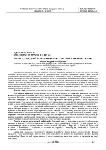 Культурологічний аспект вивчення літератури в закладах освіти.