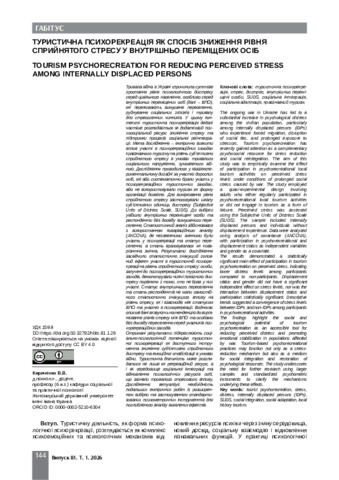 Туристична психорекреація як спосіб зниження рівня сприйнятого стресу у внутрішньо переміщених осіб.