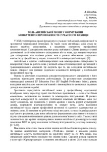 Роль англійської мови у формуванні конкурентоспроможності сучасного фахівця.