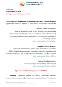 Анотація. Традиційні підходи до аналізу купівельної поведінки виявляються недостатньо ефективними в умовах високої динамічності ринку, персоналізації попиту та багатофакторності впливів, що обумовлює необхідність застосування сучасних аналітичних інструментів, зокрема алгоритмів машинного навчання. Метою дослідження є узагальнення підходів до прогнозування купівельної поведінки споживачів на основі алгоритмів машинного навчання, а також оцінювання їх впливу на ефективність маркетингових кампаній. Методологічну основу дослідження становлять методи аналізу великих даних, машинного навчання й економіко-статистичного моделювання. У дослідженні використано відкриті набори даних електронної комерції, що містять інформацію про поведінкові характеристики користувачів, транзакційні операції і маркетингову взаємодію. Для досягнення поставленої мети застосовано алгоритми класифікації, кластеризації та аналізу асоціативних правил. У результаті проведення дослідження встановлено, що найбільш вагомий вплив на купівельну поведінку мають поведінкові та маркетингові чинники, такі як час перебування на сайті, частота взаємодії із платформою та реакція на рекламні стимули, тоді як демографічні характеристики мають обмежену пояснювальну здатність. Порівняльний аналіз моделей показав, що ансамблеві методи забезпечують вищу точність прогнозування: модель XGBoost досягла значення ROC-AUC на рівні 0,95, тоді як Random Forest – 0,90, а Logistic Regression – 0,82. Оцінювання практичного ефекту застосування алгоритмів машинного навчання засвідчило підвищення рівня конверсії на 40–70%, зростання рентабельності реклами на 30–60%, збільшення рівня утримання клієнтів на 15–25% та зростання життєвої цінності клієнта на 20–40%. Отримані результати підтверджують, що використання алгоритмів машинного навчання сприяє підвищенню ефективності маркетингових стратегій за рахунок персоналізації пропозицій, оптимізації комунікацій і більш точного таргетування споживачів. Практичне значення дослідження полягає в можливості використання отриманих результатів для прийняття управлінських рішень у сфері цифрового маркетингу та підвищення конкурентоспроможності підприємств.