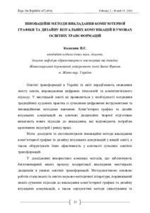 Ключові слова: комп’ютерна графіка, дизайн візуальних комунікацій, інноваційні методи навчання, проєктно-орієнтоване навчання, дизайн-мислення, цифрові технології, штучний інтелект, освітні трансформації.